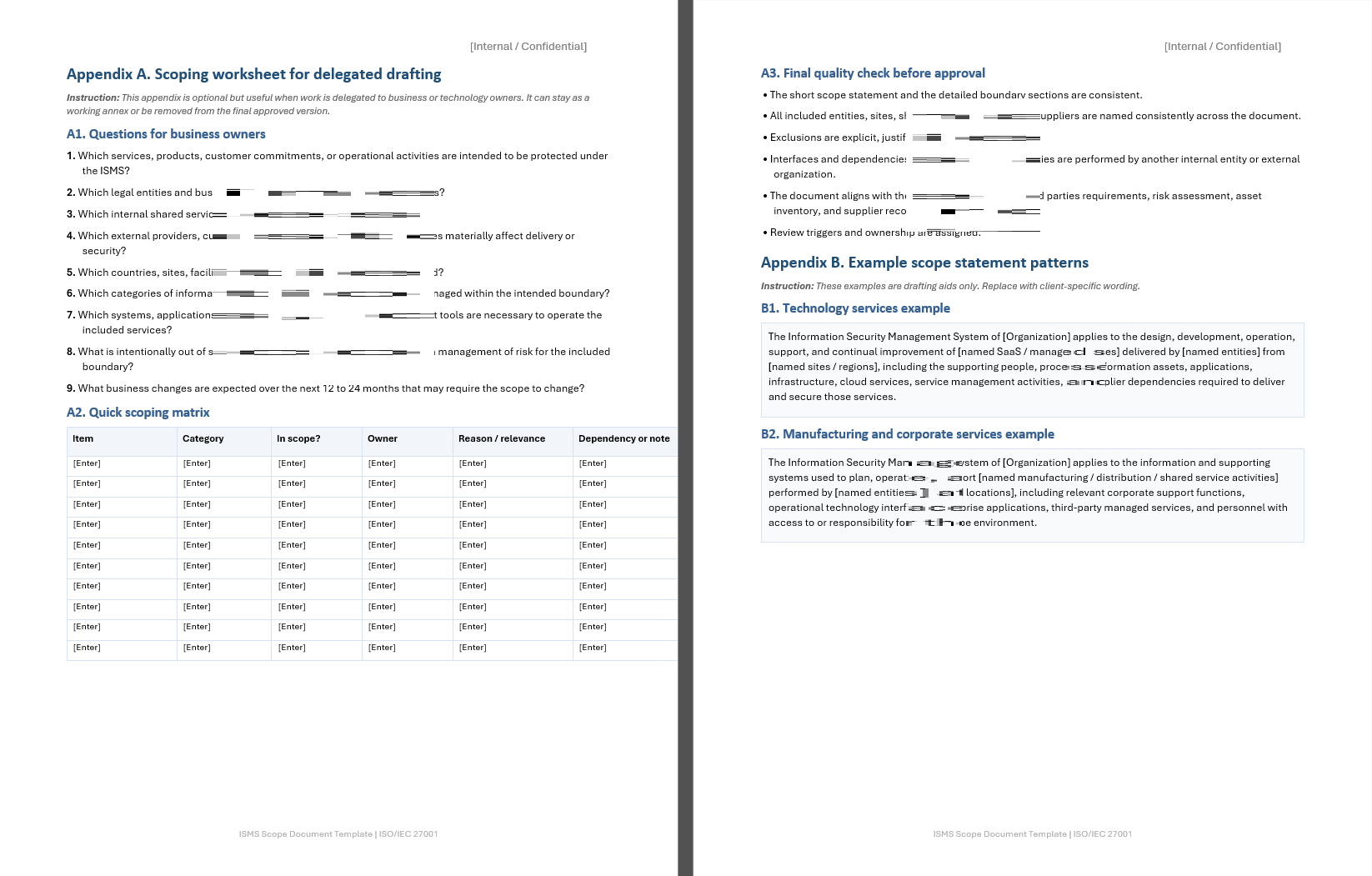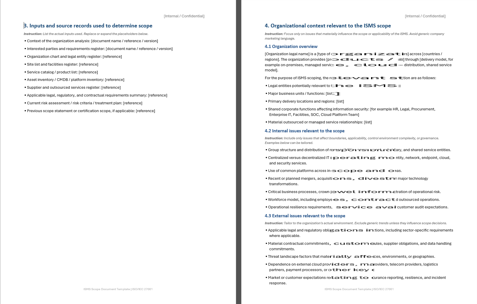 Many ISO 27001 templates are too generic, too brief, or written for small organizations with simple environments. In practice, scoping often requires much more detail to be useful.