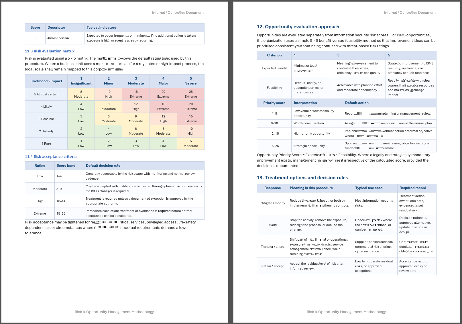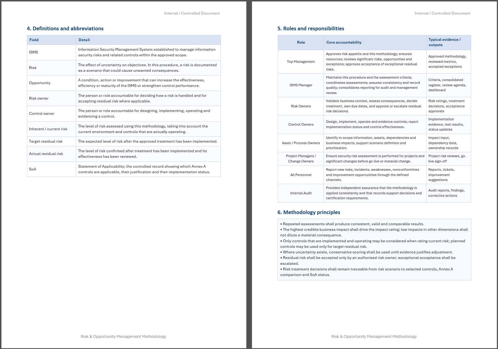 The ISO 27001 Risk & Opportunity Management Methodology is written as a formal procedure and includes the key elements organizations typically need for implementation and audit support.